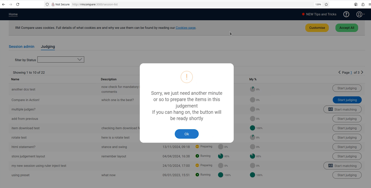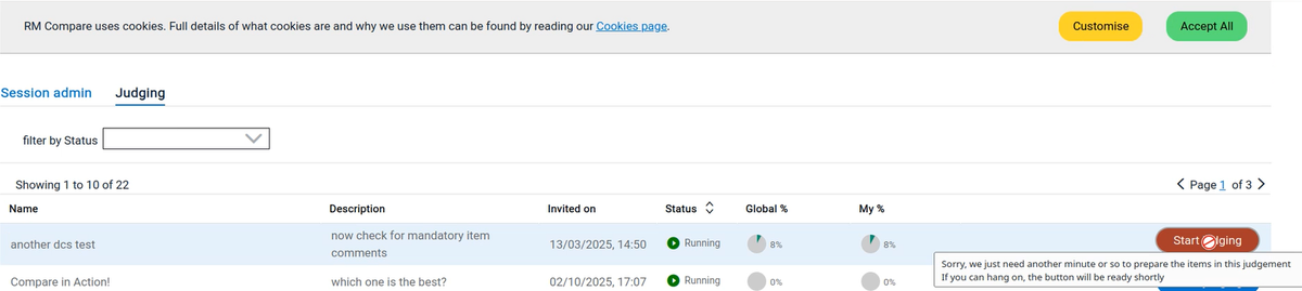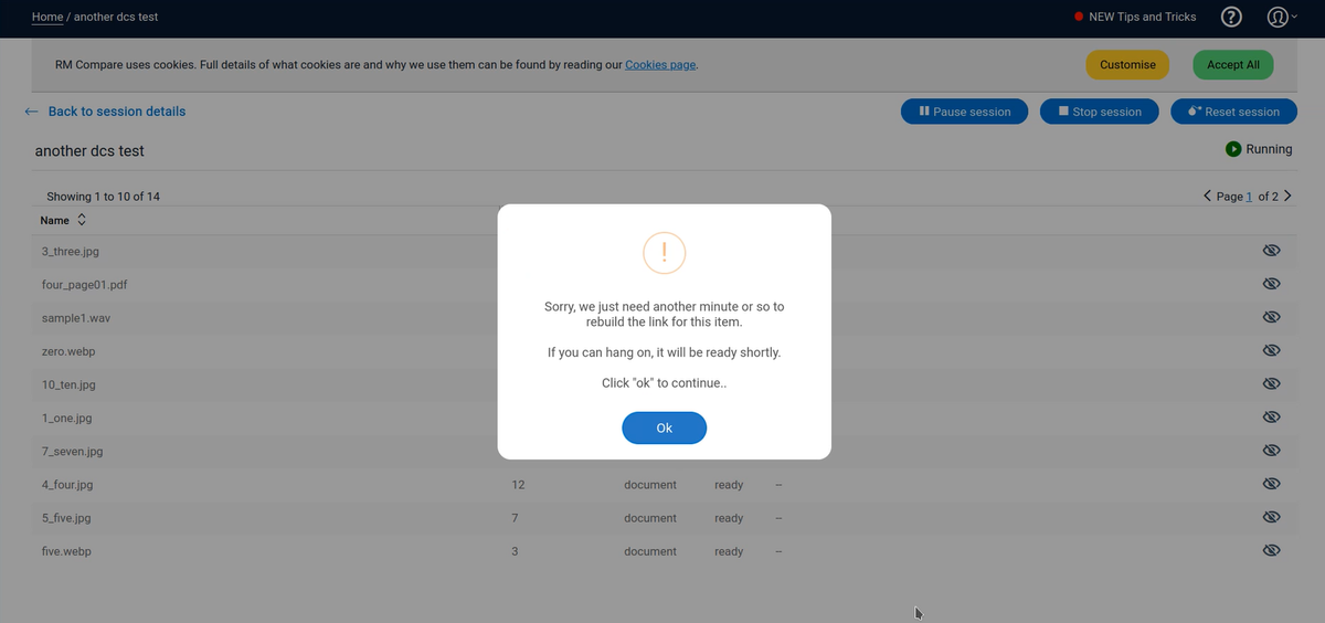 Occasionally you may visit a session from some time ago where the Items links have expired. You may, for example, use session that you have previously archived or you have used items from a previous session.