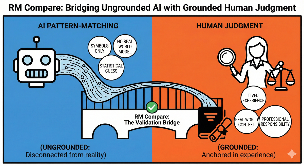 - RM Compare as the Human Anchor: We use technology to scale human judgment, not bypass it. RM Compare serves as the essential "Validation Bridge" to keep automated systems tethered to reality and professional standards.