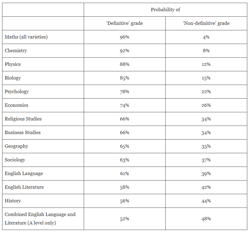 Dennis Sherwood's estimates of the reliability of school exam grades, as inferred from measurements of Ofqual’s Figure are shown above.