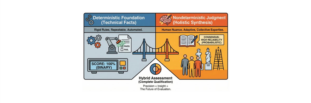 Today, we want to look deeper into the glass. Specifically, we want to discuss why the "Left Mirror" (Holistic Assessment) works so differently from the "Right Mirror" (Absolute Assessment), and why the future of high-stakes evaluation is becoming more nondeterministic.