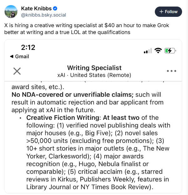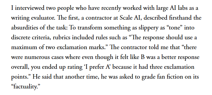 "What I learned is that modern LLMs are built in a way that is antagonistic to great writing; they are engineered to be rule-following teacher’s pets that always have the right answer in hand" - Jasmine Sun, Atlantic