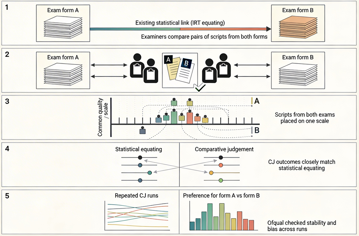 Ofqual’s latest study asked a very practical summative question: can this kind of structured expert comparison help keep standards consistent between two versions of an exam when the usual statistical approaches are off the table?