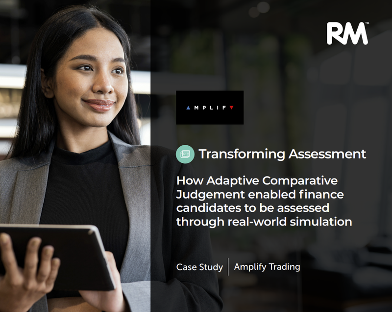 To produce an authentic, innovative talent identification solution, Amplify Trading partnered with Assessment from RM to use adaptive comparative judgement in a peer assessment format to assess candidates’ ability to present complex conclusions in actionable ways