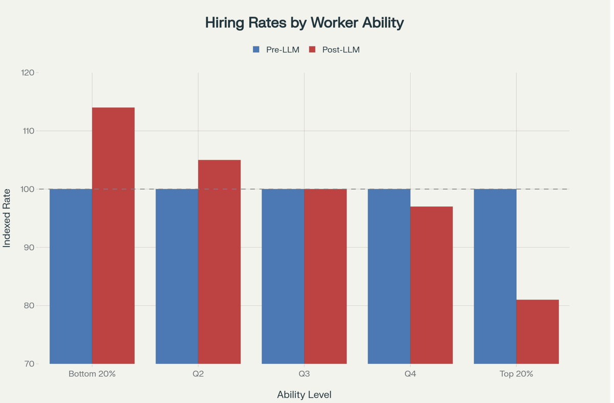 Workers bear the burden of this disruption. High-ability workers who could once credibly signal their value now compete on price against lower-cost, lower-ability workers—and lose.